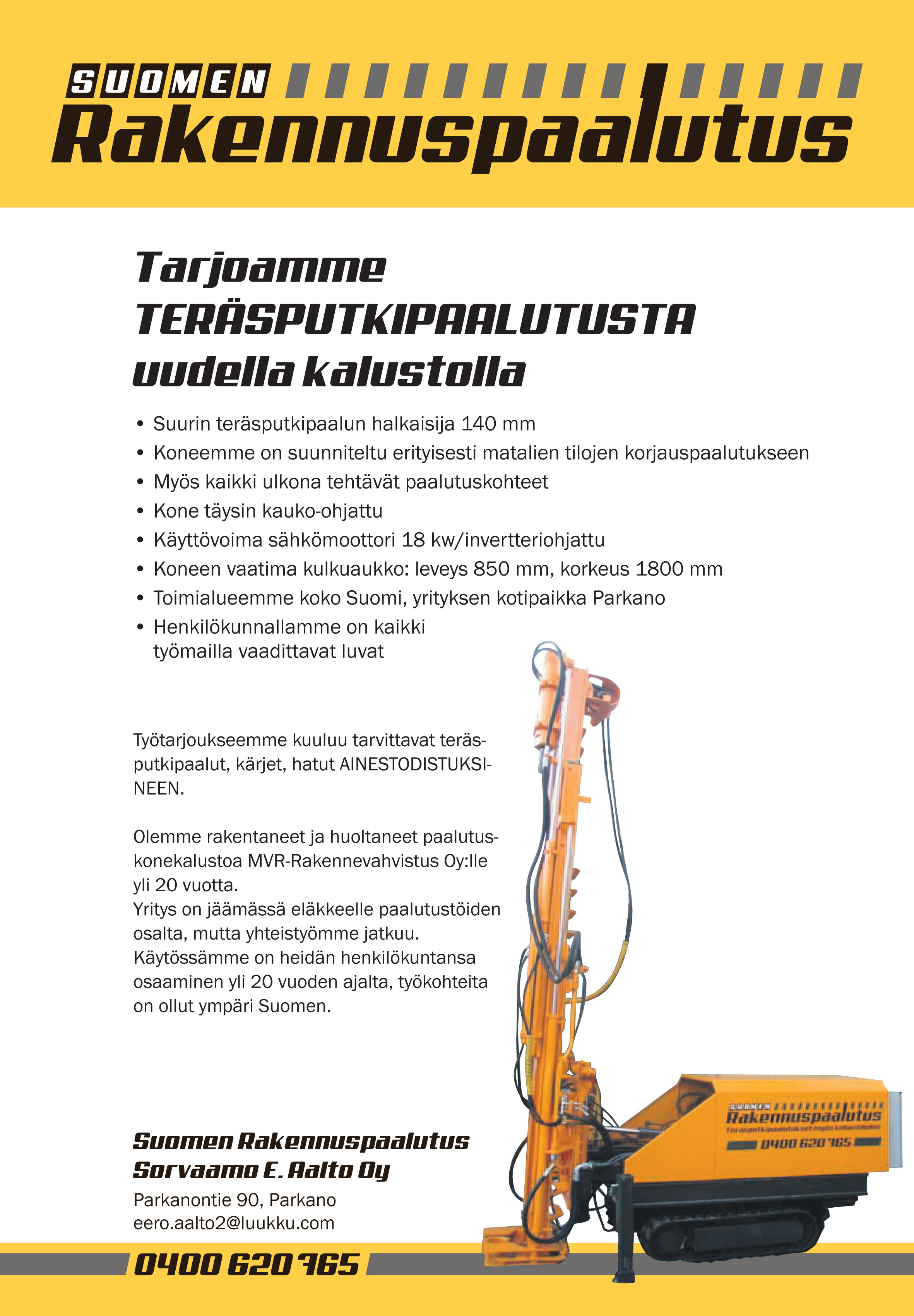 Tarjoamme teräsputkipaalutusta uudella kalustolla